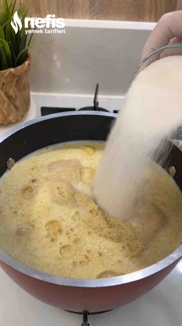 - Muhallebi gereçleri tereyağ hariç tencereye alıp ağırlaşıp kabarcıklar çıkana kadar pişirelim. Tereyağını ekleyip güzelce karıştırıp ocaktan alalım. Orta uzunluk borcama yayalım.