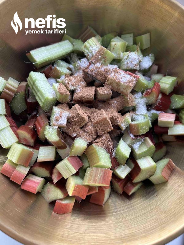 1. Öncelikle ışkınlarımızı küp küp doğrayıp iki yemek kaşığı şeker ile karıştırıp bir kenara alıyoruz.