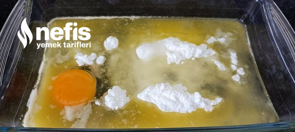 - Kaba erittiğimiz tereyağı üzerine pudra şekeri, yumurta, sıvı yağ ekleyip karıştırıyoruz.