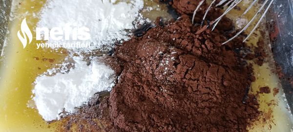 - Kakao, kabartma tozu, vanilyayı ekleyip tekrar karıştırıyoruz.