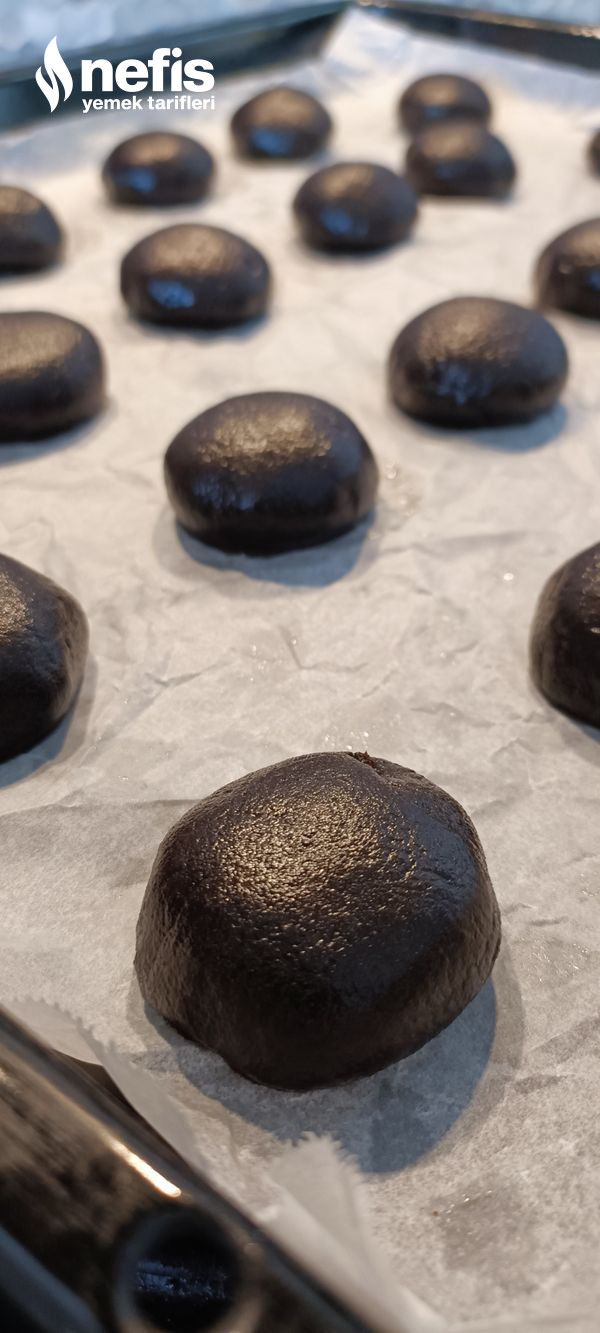 - Yoğurduğumuz hamurdan ceviz büyüklüğünde olacak halde yuvarlayıp tepsiye alıyoruz.