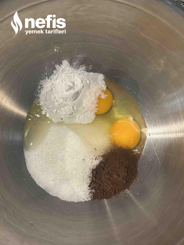 2. Karıştırma kabına tozşeker kabartma tozu yumurta ve kakaoyu ekleyelim.