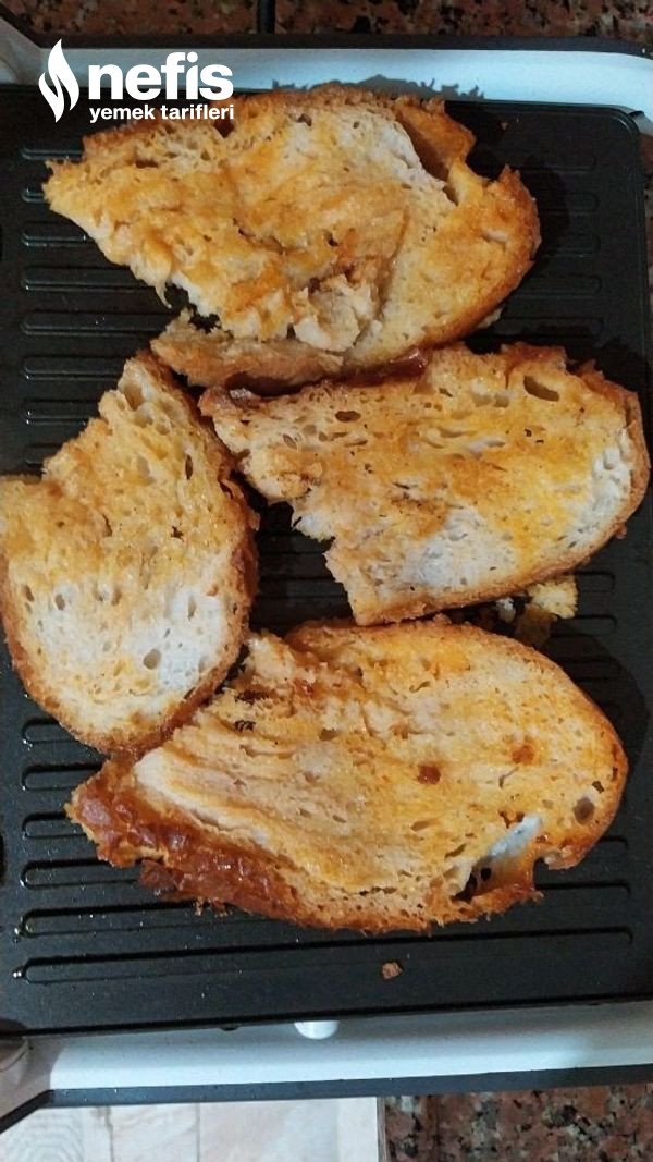 - Dilimlediğimiz ekmeklerimizi suya batırıp istersek tost makinesinde istersek tavada kızartalım.