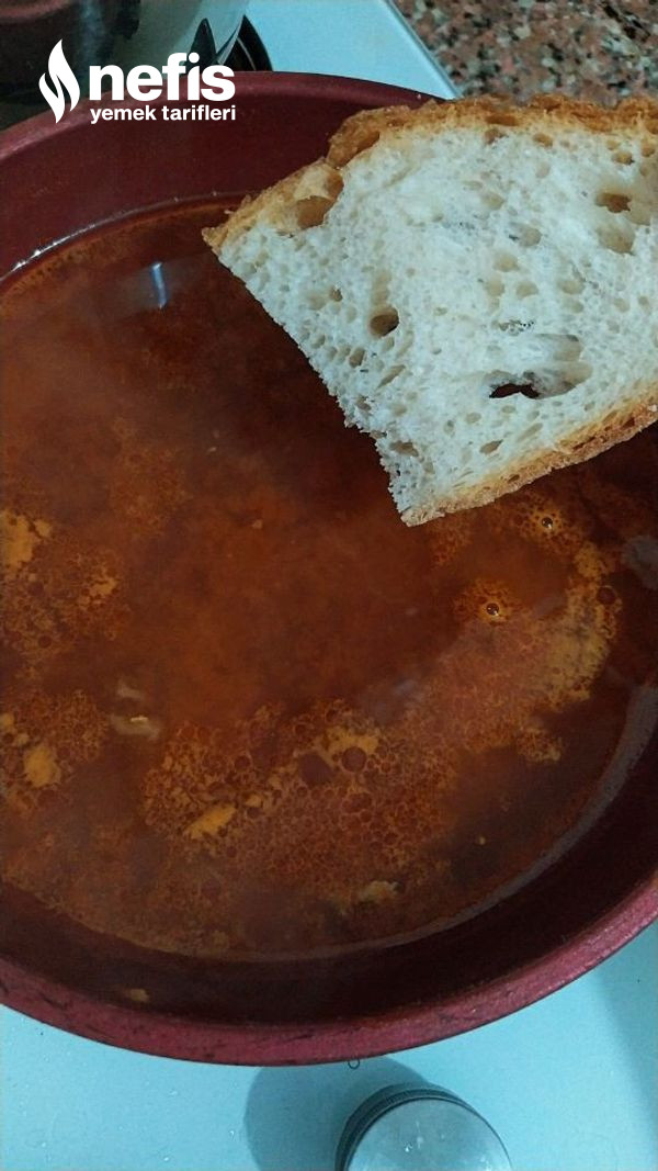 - Bir tavaya kemik suyu toz biber hazırlayıp ısınmaya bırakalım.