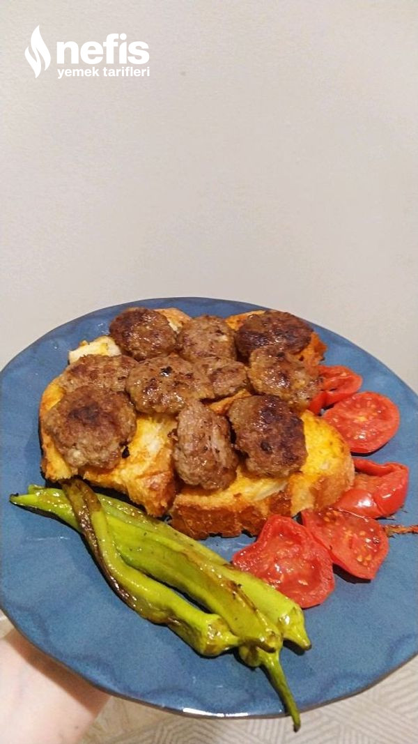 - Sonrasında kızaran ekmeklerimizi üstüne köftelerimizi yanlarına domates ve biberimizi alalım.
