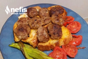 - Sonrasında kızaran ekmeklerimizi üstüne köftelerimizi yanlarına domates ve biberimizi alalım.