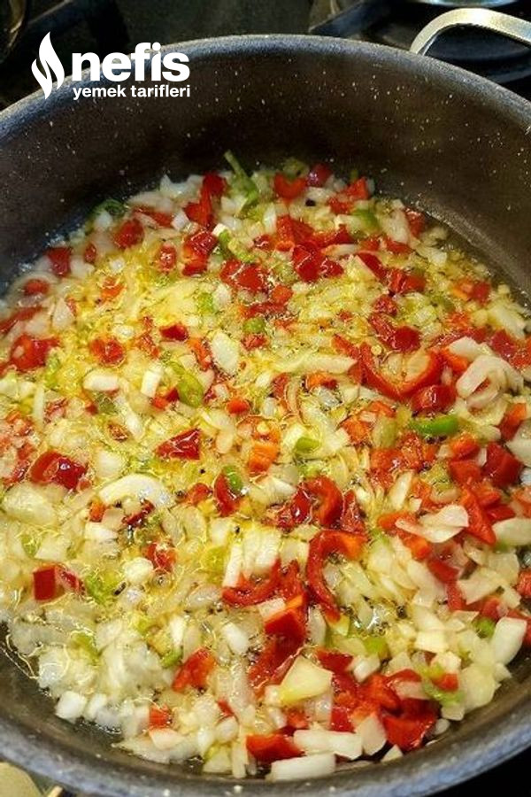 5. Biberleri ekleyin ve kavurmaya devam edin.
