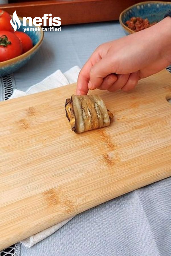 10. Patlıcanları sırayla sarın.