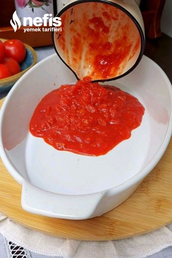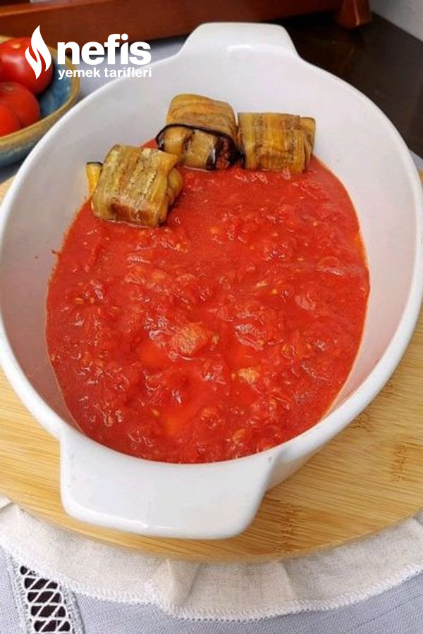 12. Rendelenmiş domatesleri bir tencereye alın ve kaynatın hafif suyunu çekince salça ve sıcak su tuz ekleyin biraz daha kaynadıktan sonra tepsiye dökün sosun üzerine patlıcanları alın.