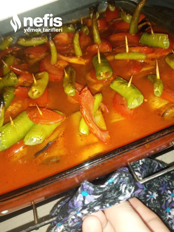 - Domates de hoşları yerleştirdikten sonra tavanın içine birazcık sıvı yağ ek ediyoruz.