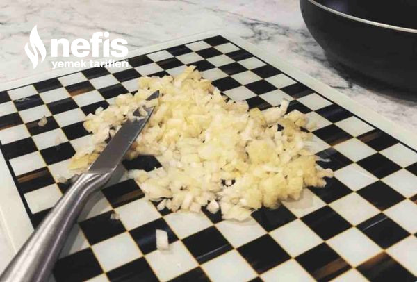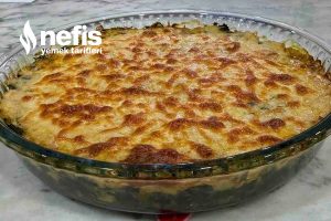 - Beşamel sos için 1,5 yemek kaşığı tereyağı tencereye alınır. Tereyağı eriyince üzerine 1,5 yemek kaşığı un koyulur ve un rengi değişene kadar kavrulur. Kavrulan onun üzerine 1,5 su bardağı süt eklenir muhallebi kıvamına gelir. Tuz ve karabiberi eklenerek ocağın altı kapatılır.