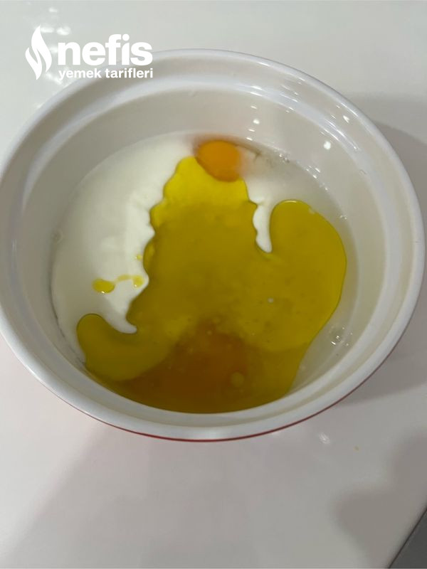 2. Bir kaba yoğurt ,yumurtaları, zeytinyağını ve suyu ekleyip güzelce çırpalım.