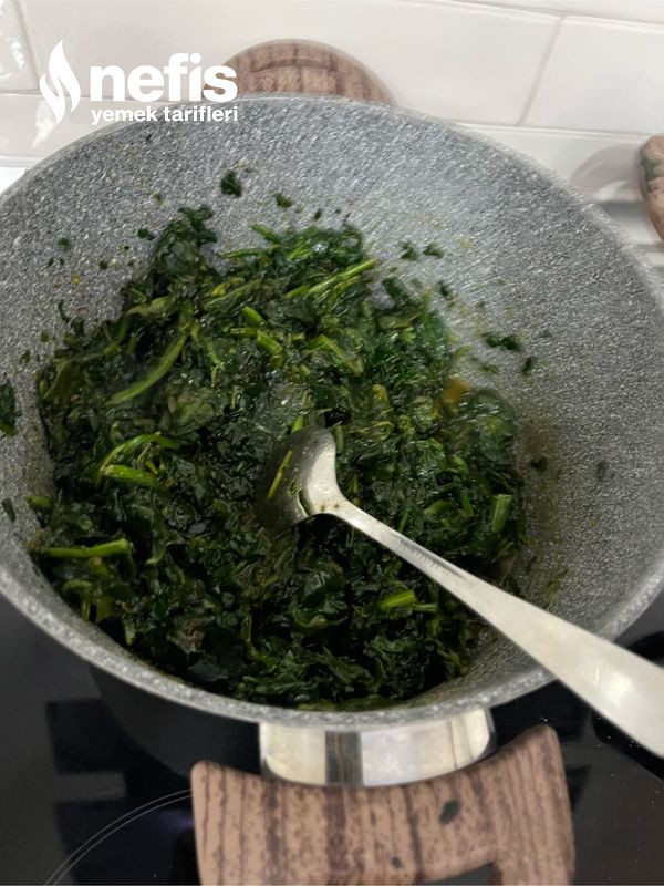 1. Bir tavaya zeytinyağını alalım üzerine ıspanağımızı ekleyelim, karabiberi ,tuzu ,kırmızı biberi ekleyelim, ıspanaklar suyunu salınca altını kapatıp bir kenara alalım.