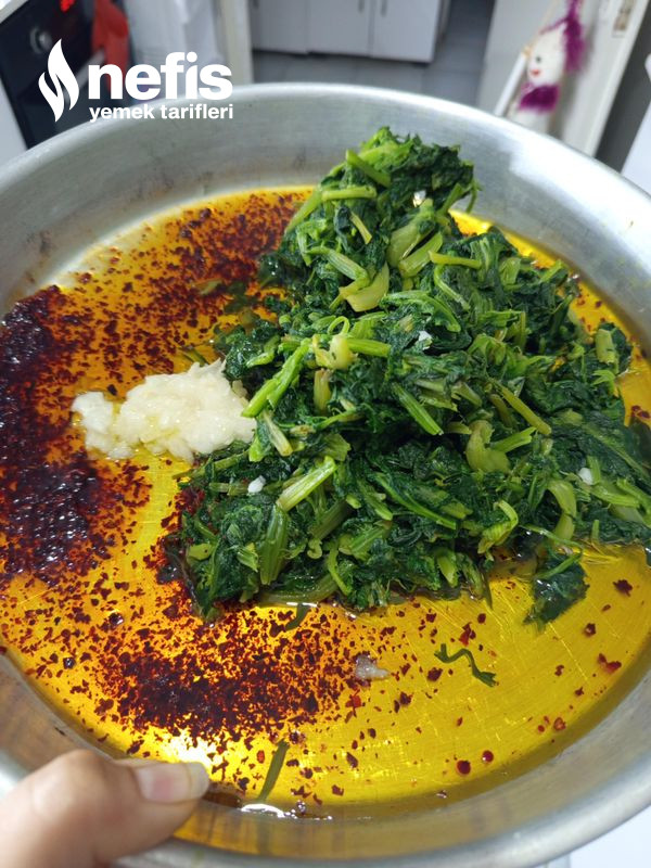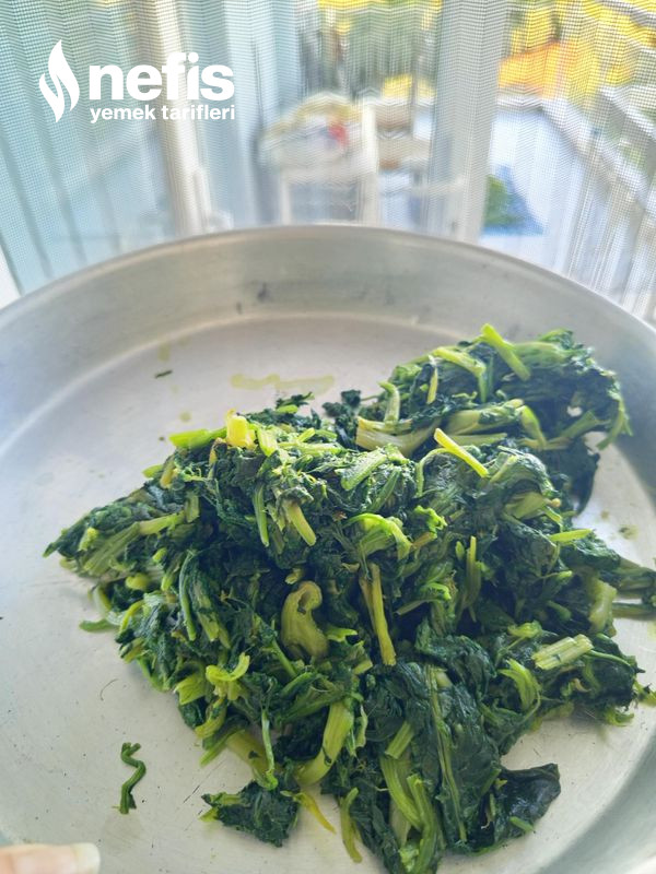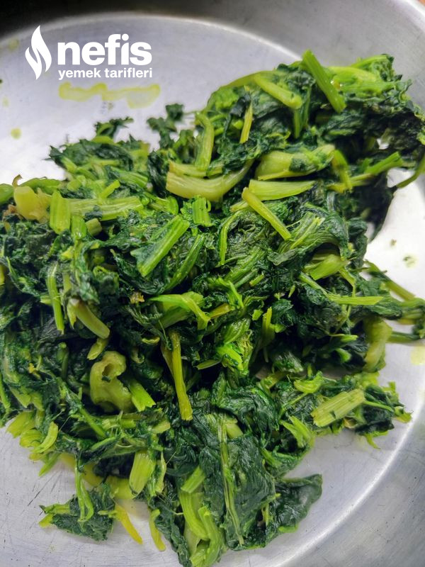 - Şekillenen hamurlar kenarda beklerken biz ıspanağı güzelce yıkıyoruz doğruyoruz ve kaynar suda bir iki dakika hafif ölene kadar başlıyoruz. Akabinde kevgire alıyoruz ve soğuyor. Suyunun tamamını sıkıyoruz ıspanakların.