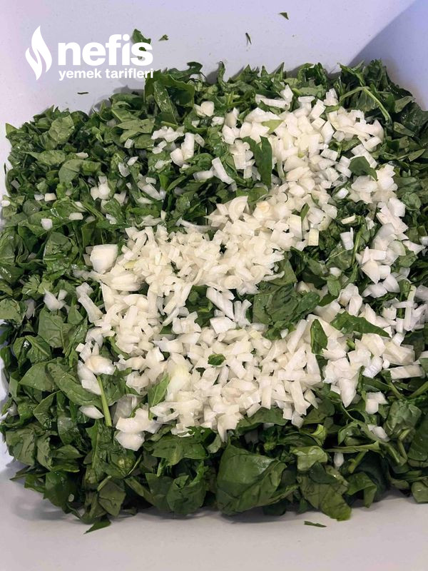 - Soğanı doğrayıp ıspanağa ek edelim.