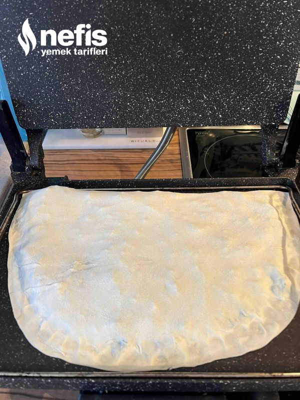 - Ispanak harcından ek edip eşit formda yerleştirelim ve tuz eği yapıp kapatalım. (havasını alıp elimizle kenarlarını bastıralım. ).