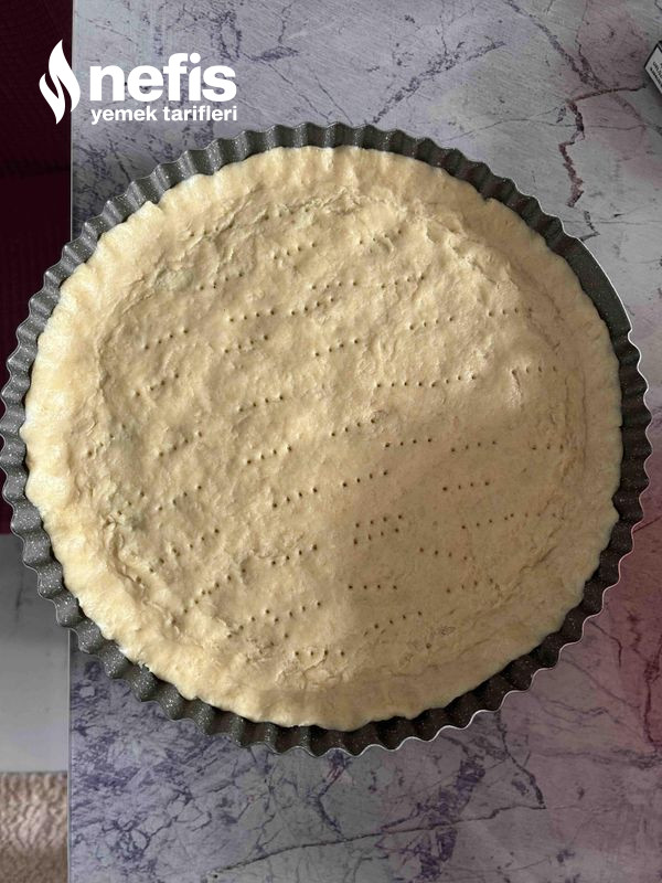 - Hamur için; tüm gereçleri bir kaba alın güzelce karıştırıp yoğuralım. Tart kalıbına alalım yayalım üstünü çatal ile delikler açalım.