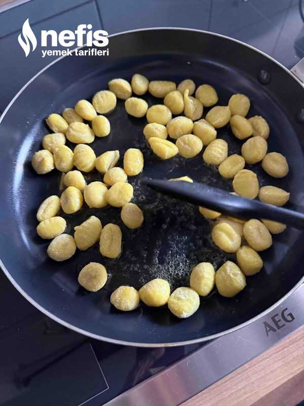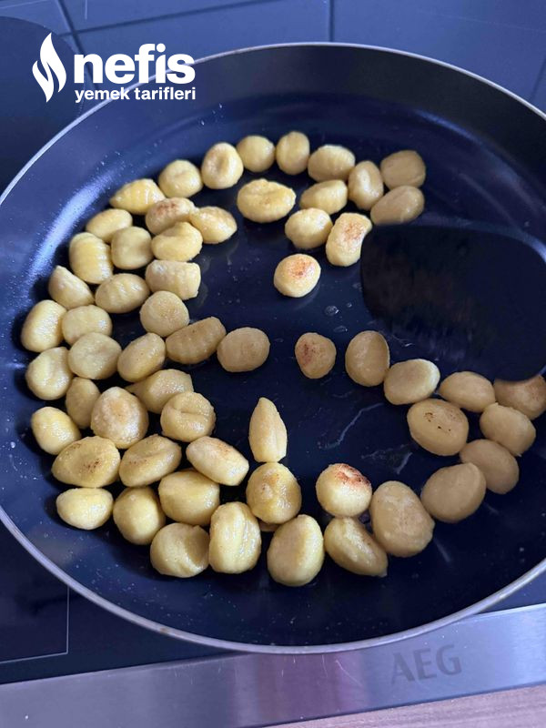 - Tereyağı ve zeytinyağını tavanızda orta ateşte eritin. Gnocchileri tavaya alıp kızartın.