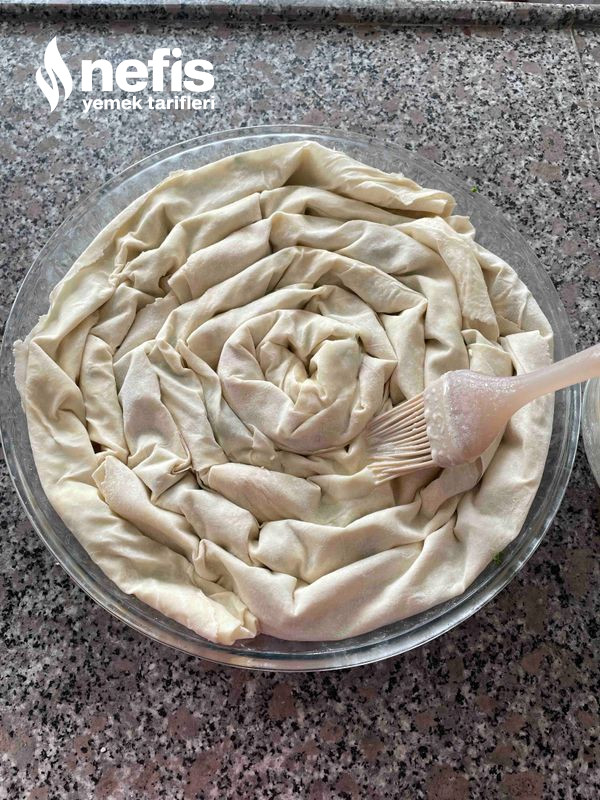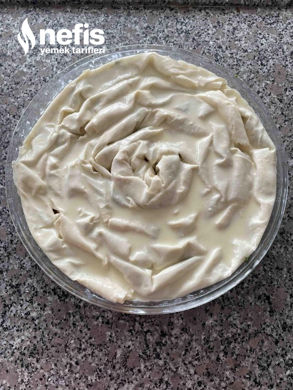 4. Diğer yufkalar içinde tıpkı süreci yapalım bütün yufkalar bitince kalan sosu üzerine gezdirelim ve fırçayla sürelim. Vaktiniz varsa üzerine streç sinema geçirip buzdolabında 2 saat kadar bekletelim (akşam yapıp buzdolabında bekletip sabah pişirebilirsiniz)
