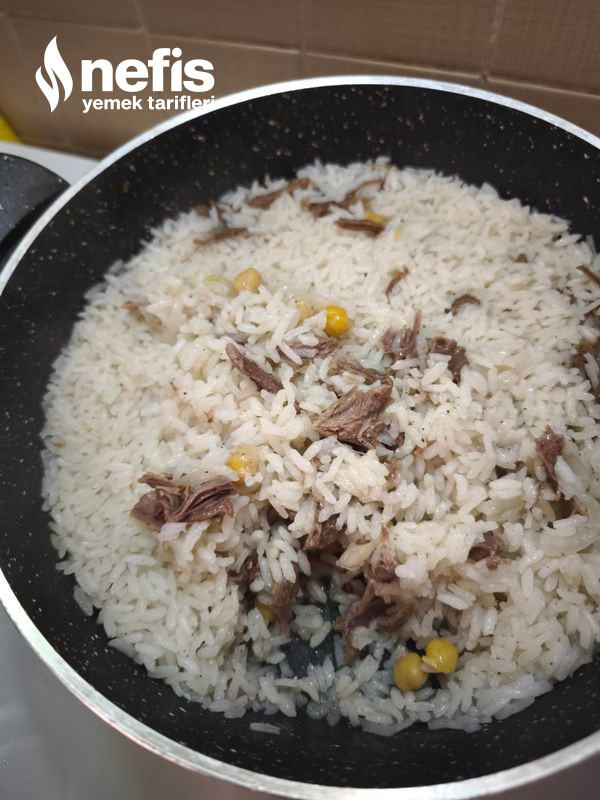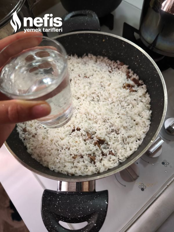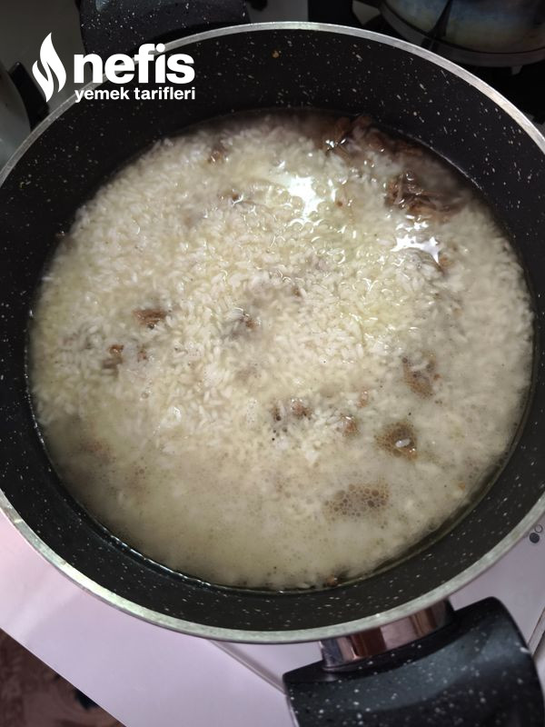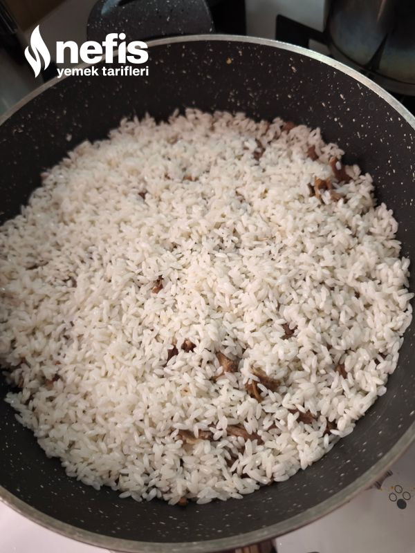 - Pirinçi yıkayıp süzdükten sonra etin üzerine yayalım.