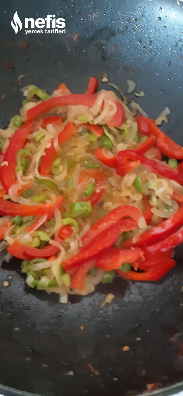 - Tüm biber ve soğanıda jülyen halinde doğrayıp kenara koyun.