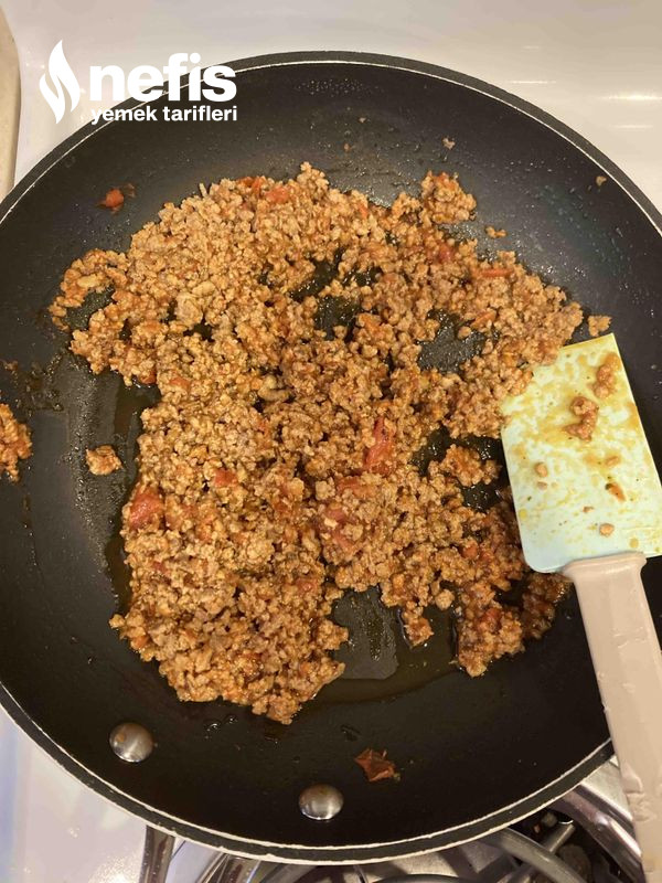 - Kıymayı ekle, suyunu salıp çekene kadar kavur.
