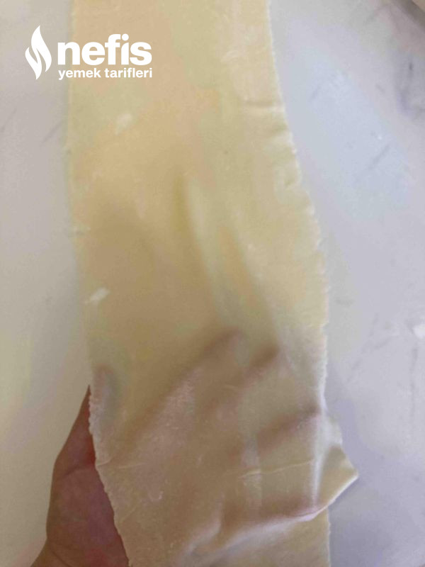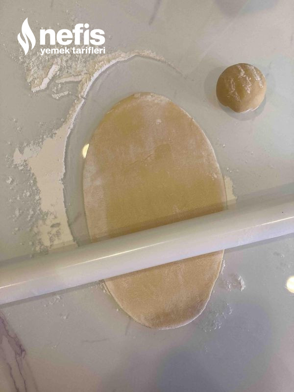 - Dinlenince hamuru 3-4 modüle böl. Merdane ile incecik (yaklaşık 1–2 mm) aç.