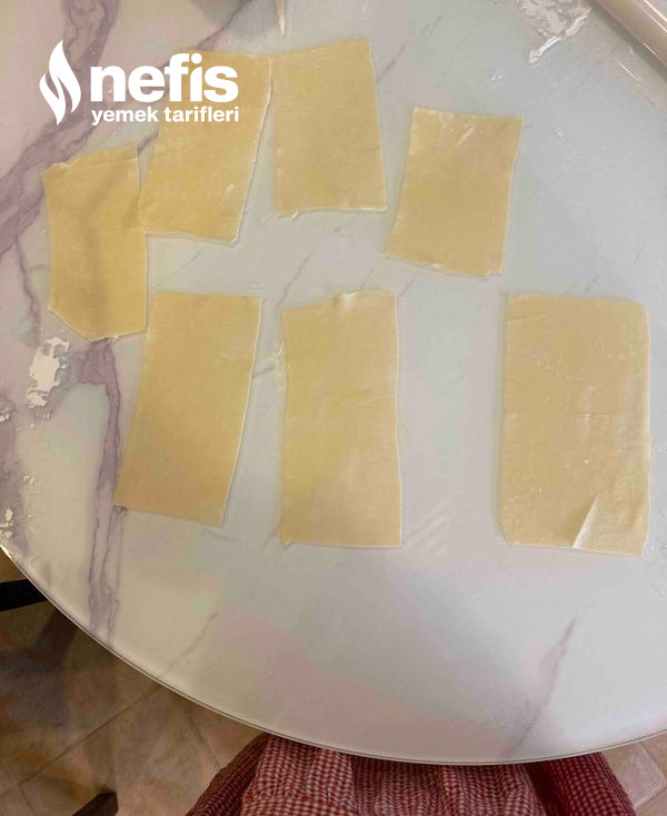 - Bu hamur modüllerini tuzlu kaynar suda 30–60 saniye haşlayıp soğuk suya al. Ve birbirlerine yapışmayacak biçimde tepsiye al.
