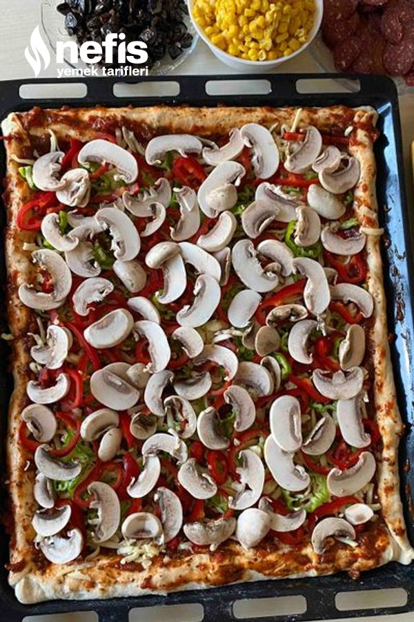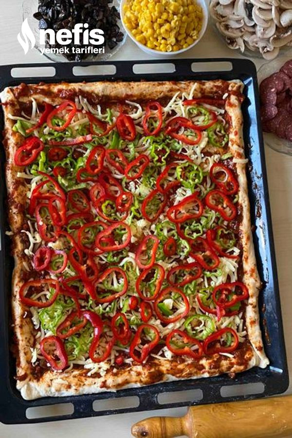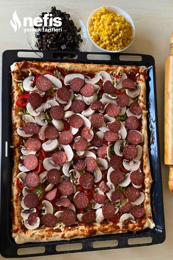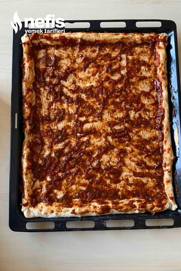 - Ben büyük uzunluk tepside yapıyorum. Yuvarlak tepsilerde de yapabilirsiniz büsbütün size kalmış. Hatta bu hamurdan minik minik pizzalarda yapılabilir.