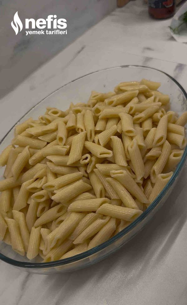 - Penne makarnayı haşlayın, süzün ve soğumaya bırakın.