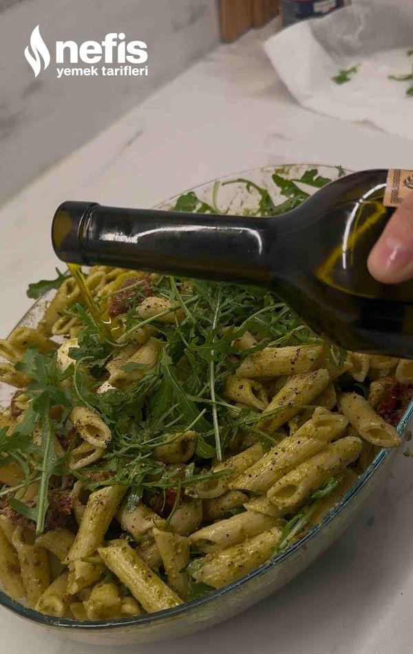 - Soğuyan makarnayı pesto sos ile yeterlice karıştırın.