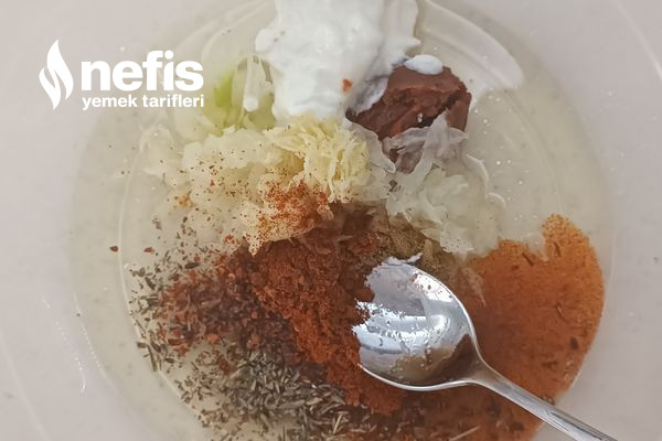 - Kanatlar hariç tüm materyalleri bir kapta güzelce karıştırıyoruz.
