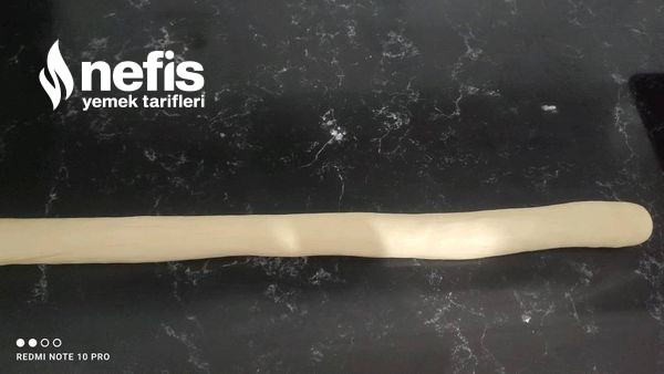 2. Daha sonra hamuru uzun bir formda yuvarlayalım ve küçük küçük kesimlere ayıralım.