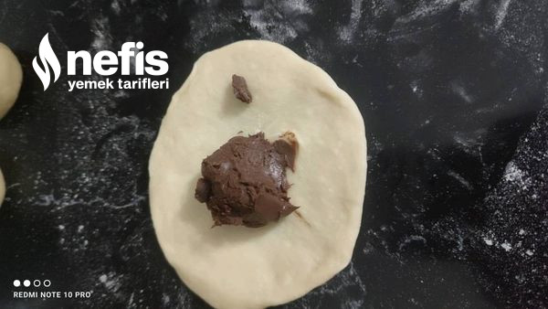 3. Ayırdığımız kesimleri yuvarlayalım beze haline getirelim tek tek açıp ortalarına çikolata sürelim etrafından toparlayıp tekrardan elimizde yuvarlayalım.