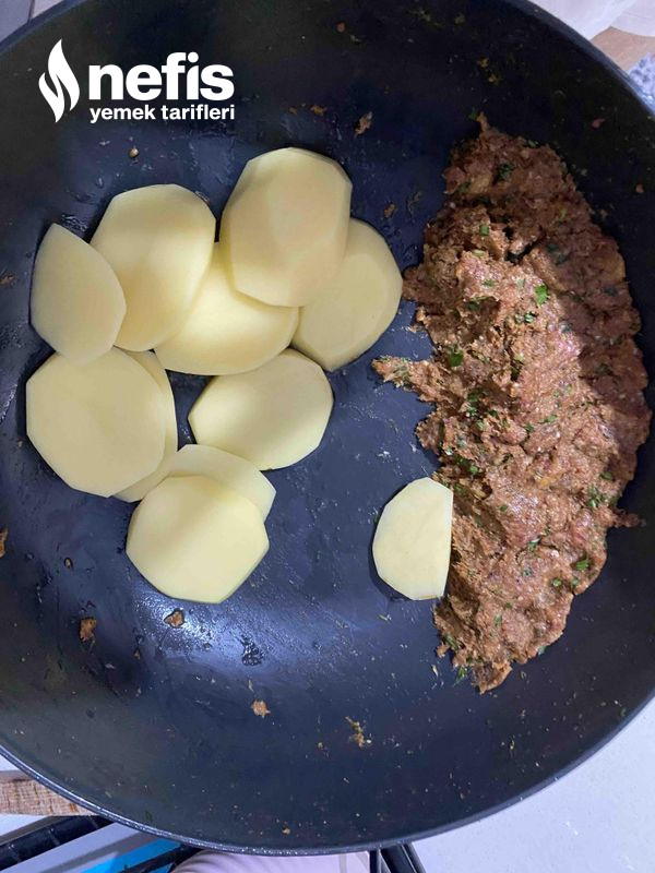 - Dinlenen köftelerde daire haline getirelim kalınlıkları patatesinki ile eşit olsun.