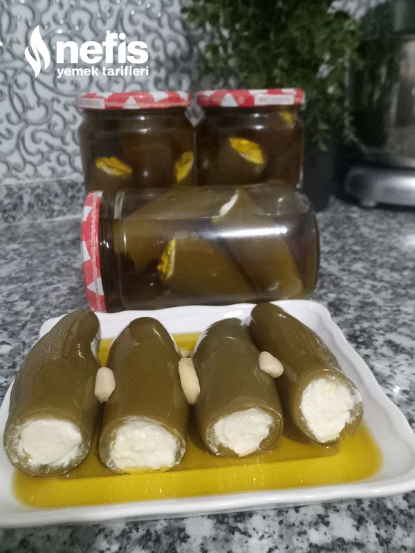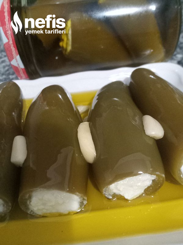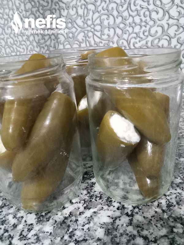 - Dinlenen biberlerimizi peynir dolgusuyla doldurduktan sonra tekrar kavanoza alıp üzerini geçecek kadar zeytinyağı ,sıvı yağ ,yarım çay bardağı da turşunun kendi suyundan ek edelim.
