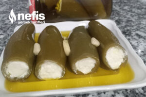 - Dinlenen biberlerimizi peynir dolgusuyla doldurduktan sonra tekrar kavanoza alıp üzerini geçecek kadar zeytinyağı ,sıvı yağ ,yarım çay bardağı da turşunun kendi suyundan ek edelim.