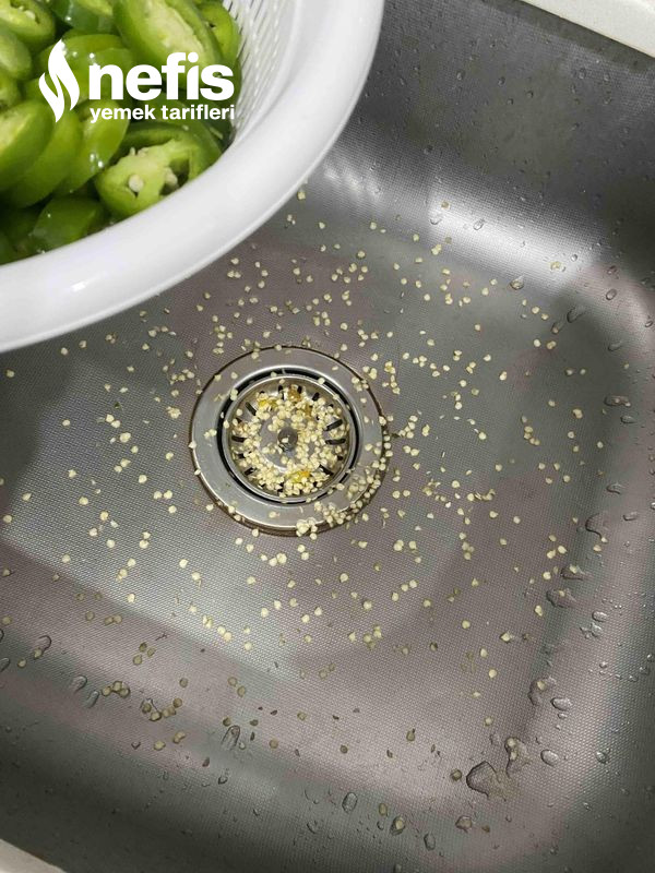 2. Tohumlarını dökmek için geniş delikli kevgir ile eleyerek tohumlarını dökülecektir. 📌( yıkamak yerine bu türlü daha hoş oluyor yoksa suya temas edince acısı hem eli hemde boğazımızı yakıyor ).