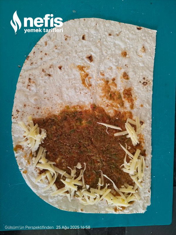 5. Kenar kısımlarına da kaşar az az koyuyoruz. Sonra kapatıyoruz.