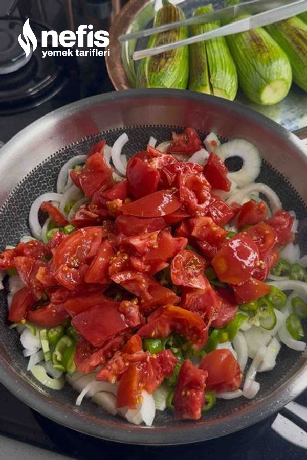 - Kızaran kabakların ortalarına hazırladığınız domates sosunu paylaştırın.