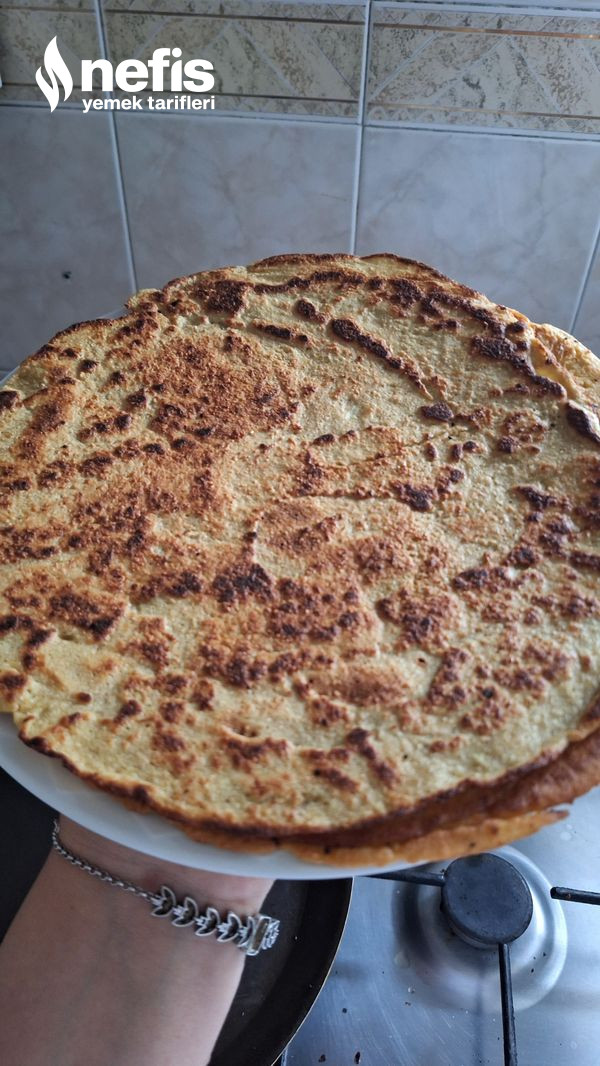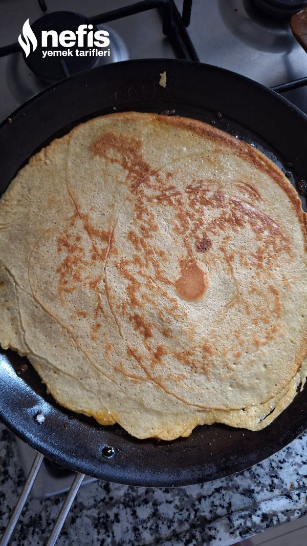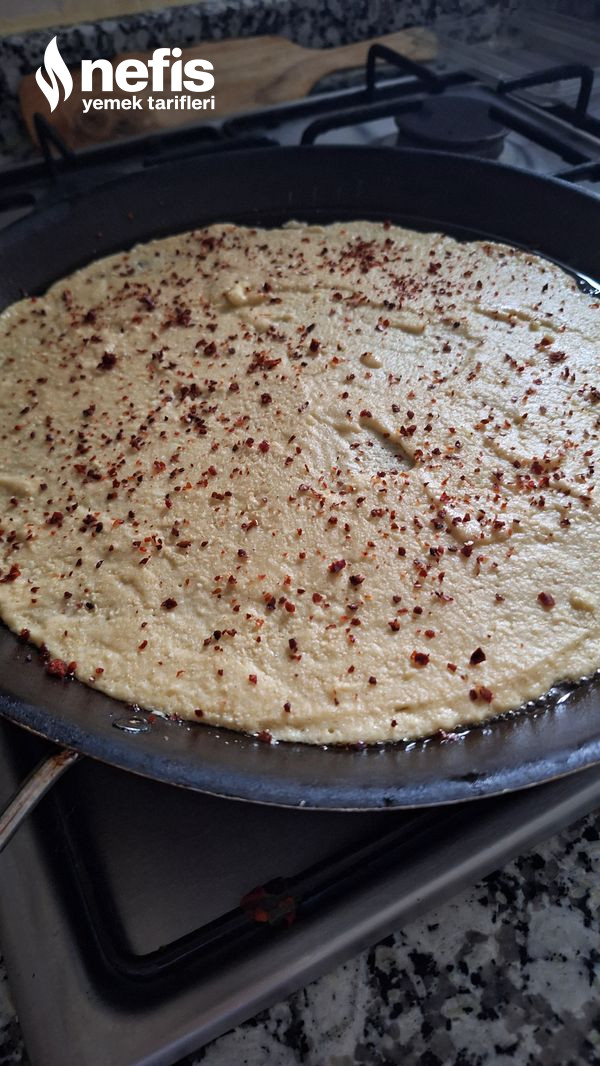 2. Yapışmaz tavaya az tereyağ yada zeytinyağı sürülerek ince katman halince hazırlanan harç dökülür.