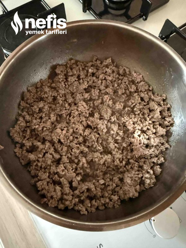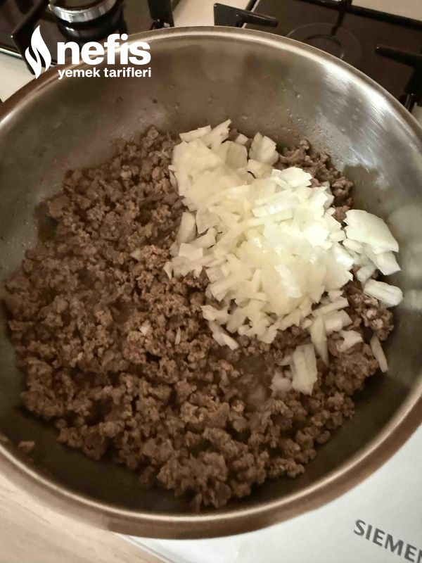 - Kıymayı tencereye alıyoruz rengi dönünce üstüne soğanları ekliyoruz.
