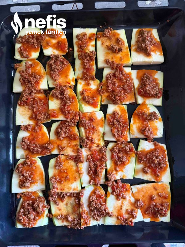 - Sırayla evvel kıymalı harcı sonra üstüne beşamel sosu gezdiriyoruz ve bunu kabaklar bitene kadar devam ediyoruz.