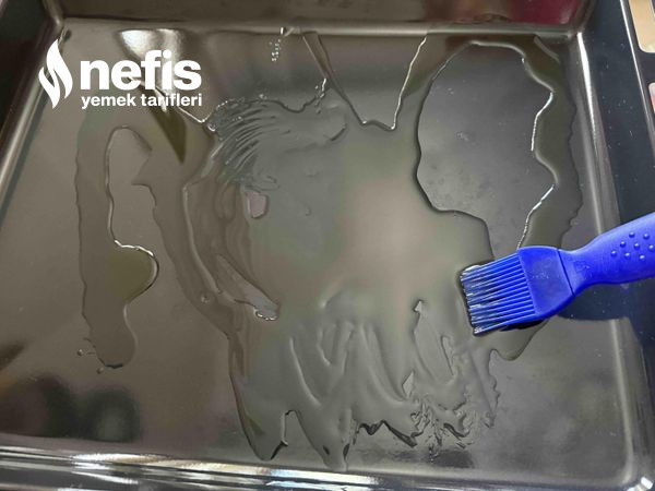 - Yağladığımız fırın tepsisine bir kat döşüyoruz.
