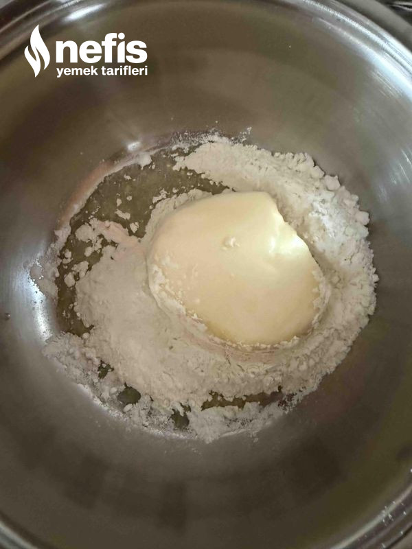 - Ayrı bir tencerede tereyağımızı ve unumuzu kavurmaya başlıyoruz, rengi dönünce sütümüzü ekleyip topaklanmaması için çırpma teli ile çırpıyoruz.