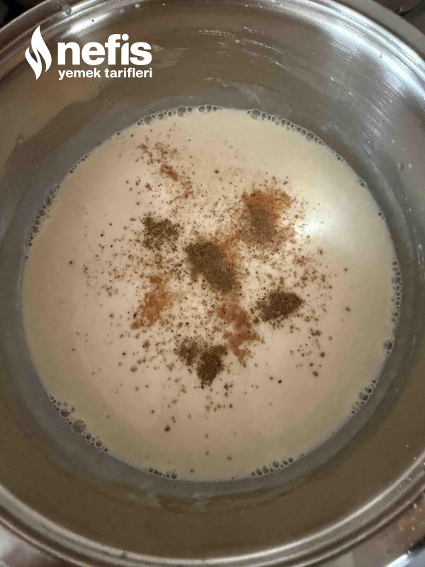 - Tuz, karabiber ve muskat ekleyerek kaynamasını bekliyoruz.