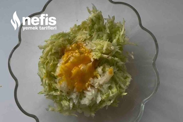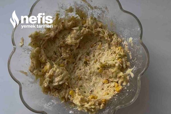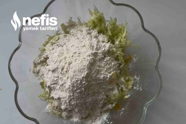 - Diğer gereçleri bir kaba alıp içerisinde suyu sıkılmış kabakları da ekleyip bir karışım haline getirin.