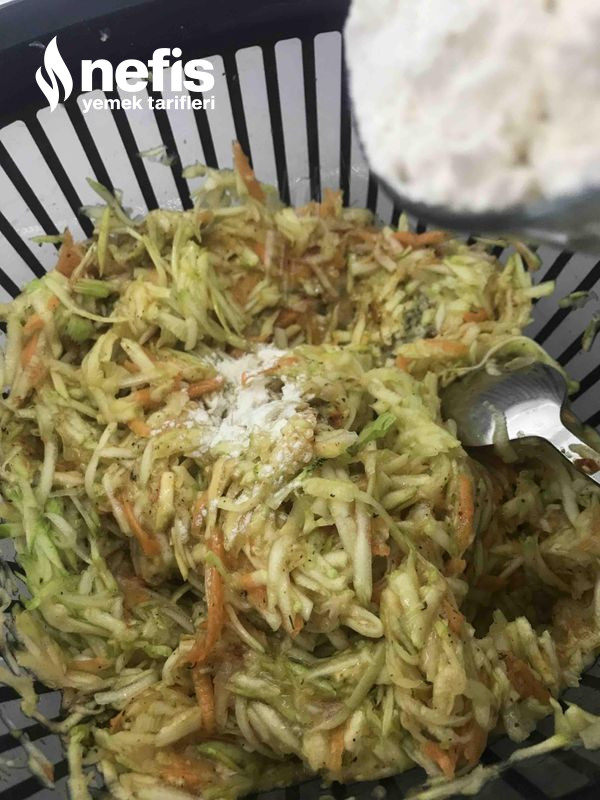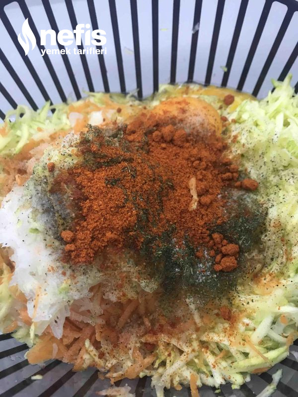 - İçine havucu ,soğanı rendeleyip yumurta, karabiber, kırmızı toz biberi,tuzunu,koyup karıştırdım.