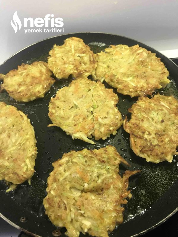 - Az sıvı yağ koyup mücver harcından kaşıkla alıp yaydırdım.