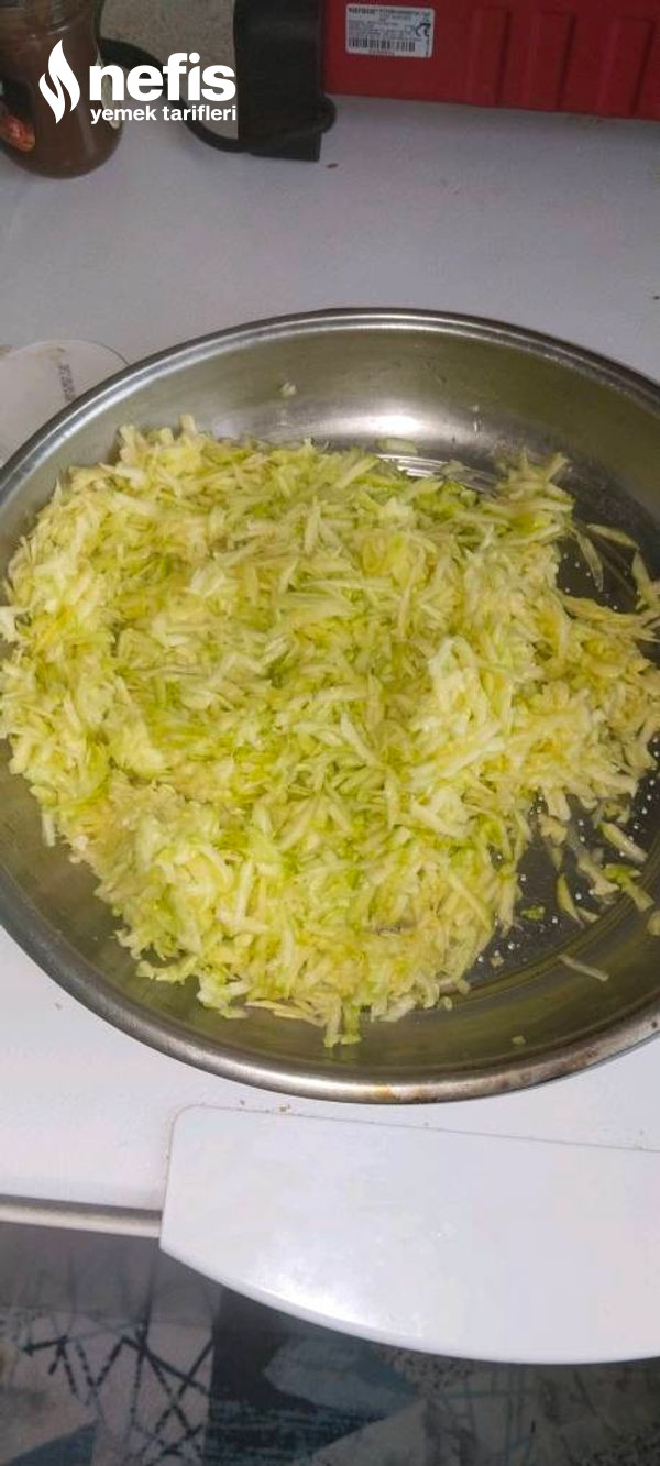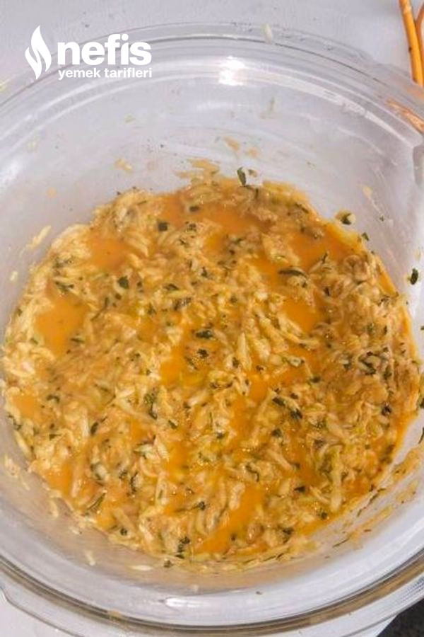 - Rendelediğimiz kabakların suyunu elimizle sıkıp karışıma ekleyip kasıkla güzelce karıştıralım.